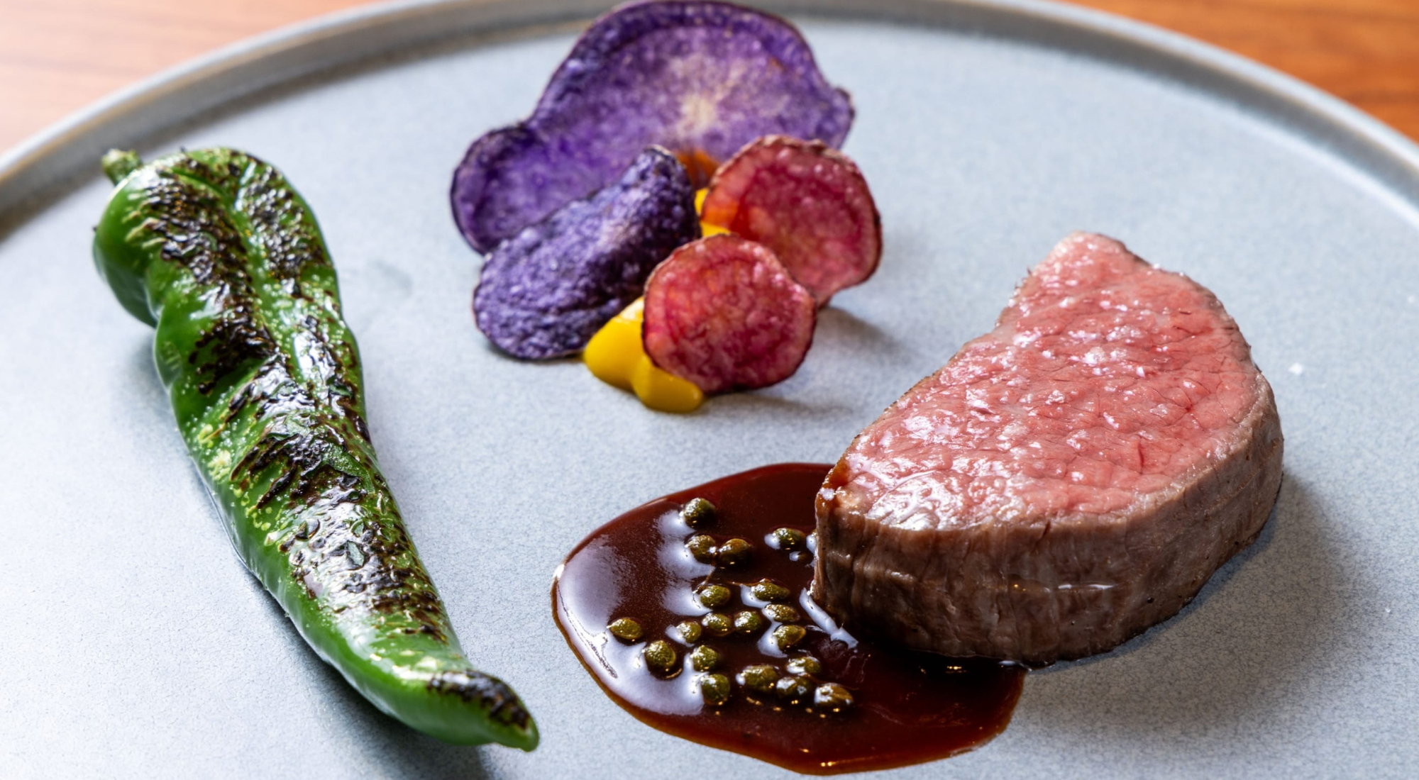 富士の介や鮎、甲州地鶏、甲州牛、富士北麓野菜、季節のフルーツなど、地元・山梨周辺で収穫された四季折々の食材を使い、フランス料理の技法を軸に自由な発想であなただけの料理を組み立てます。