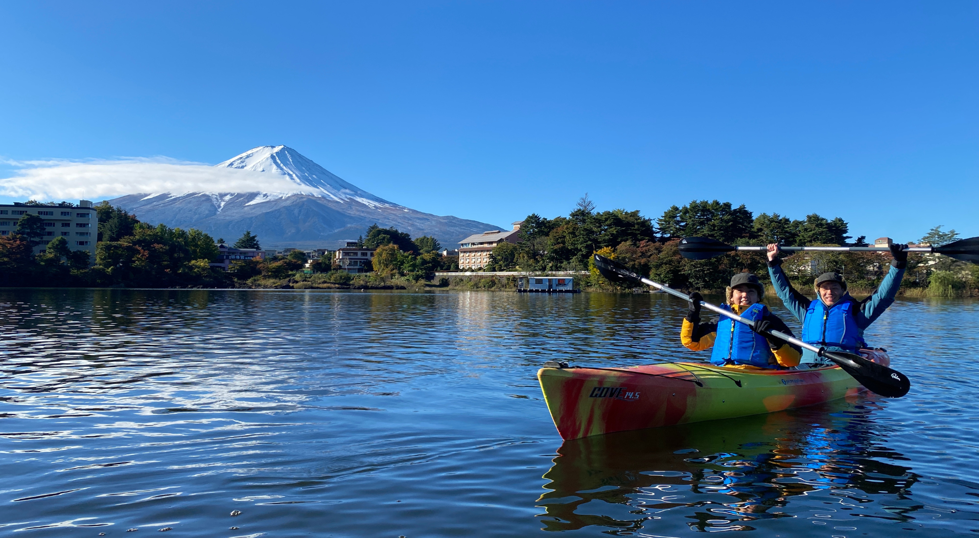 河口湖では、カヤック、SUP、クルージング、そしてワカサギ釣りなど、多様なアクティビティを楽しめます。